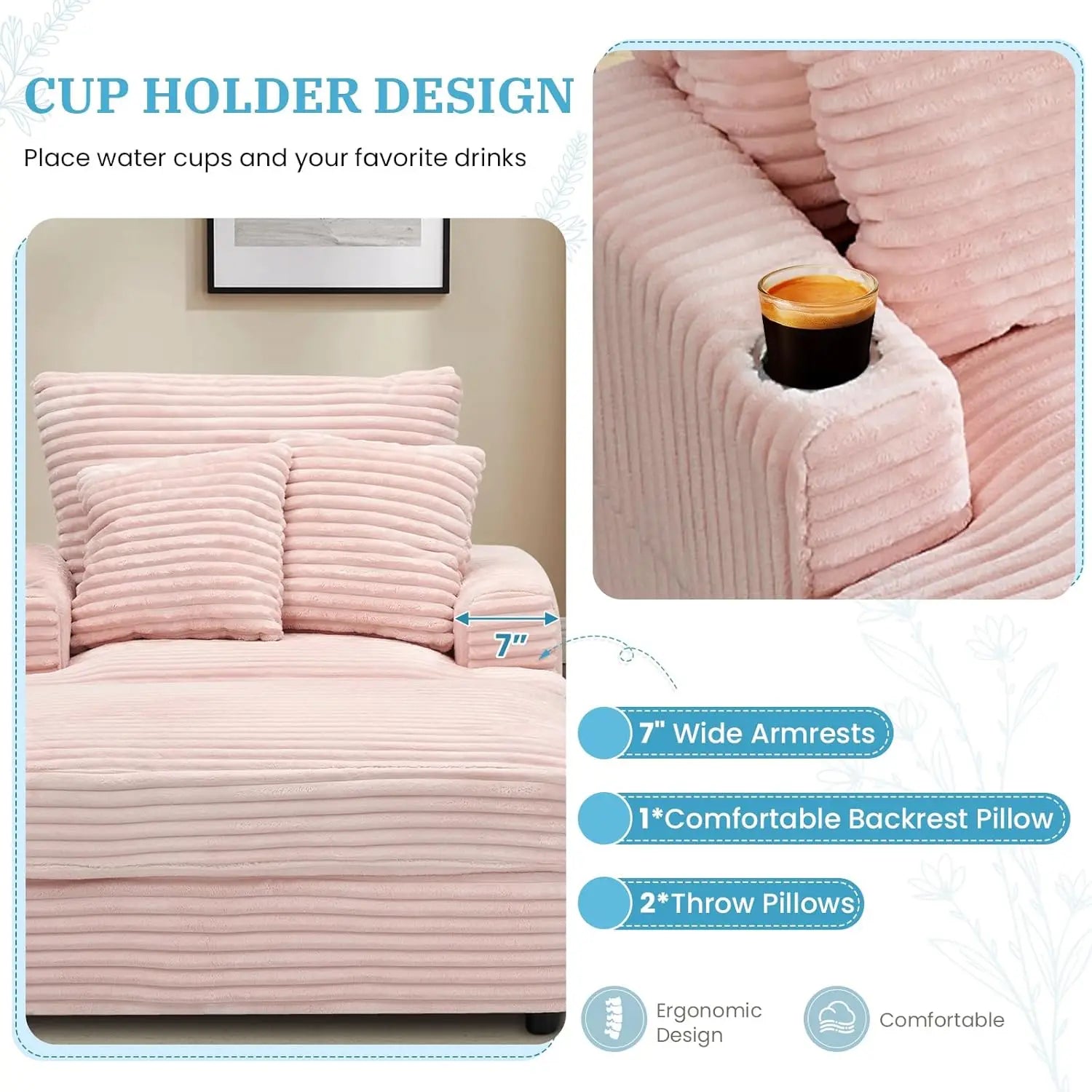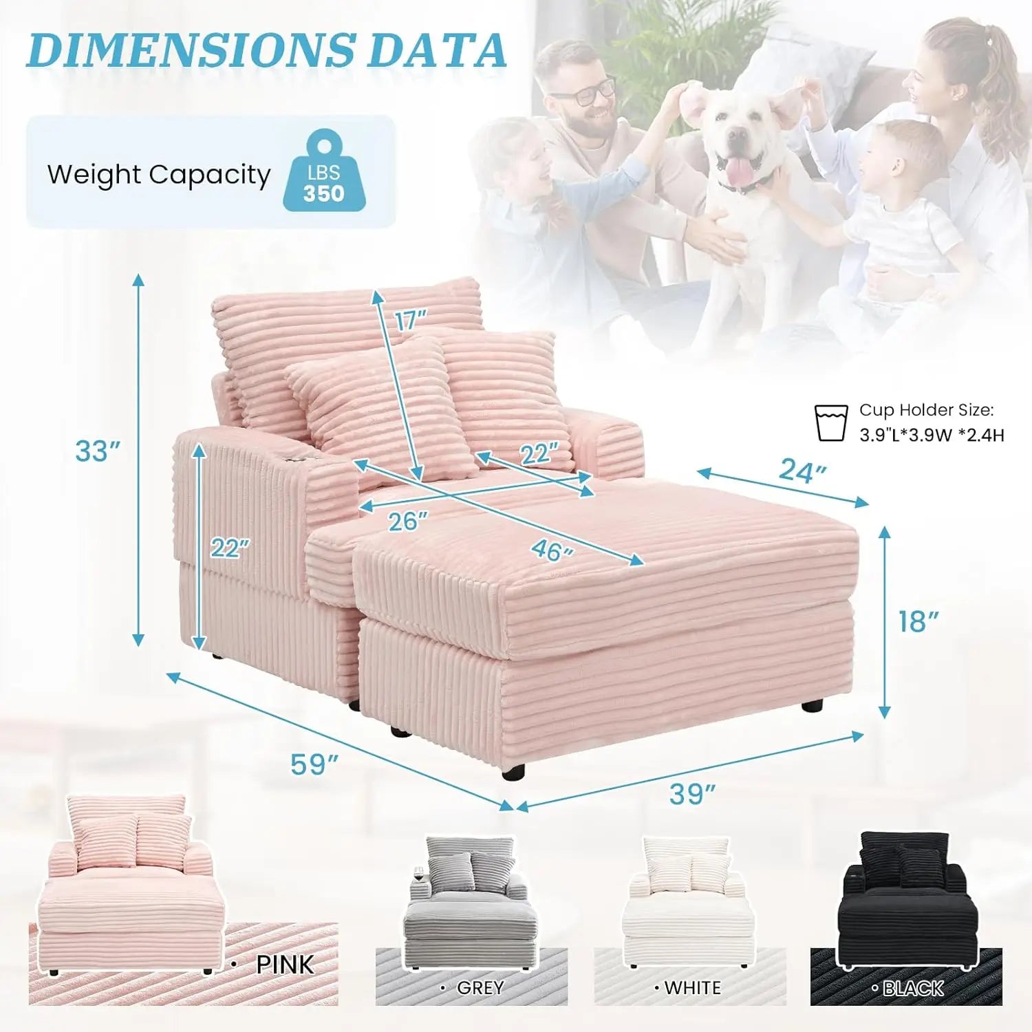39" Wide Plush Corduroy Oversized Armchair with Ottoman with Cup Holder