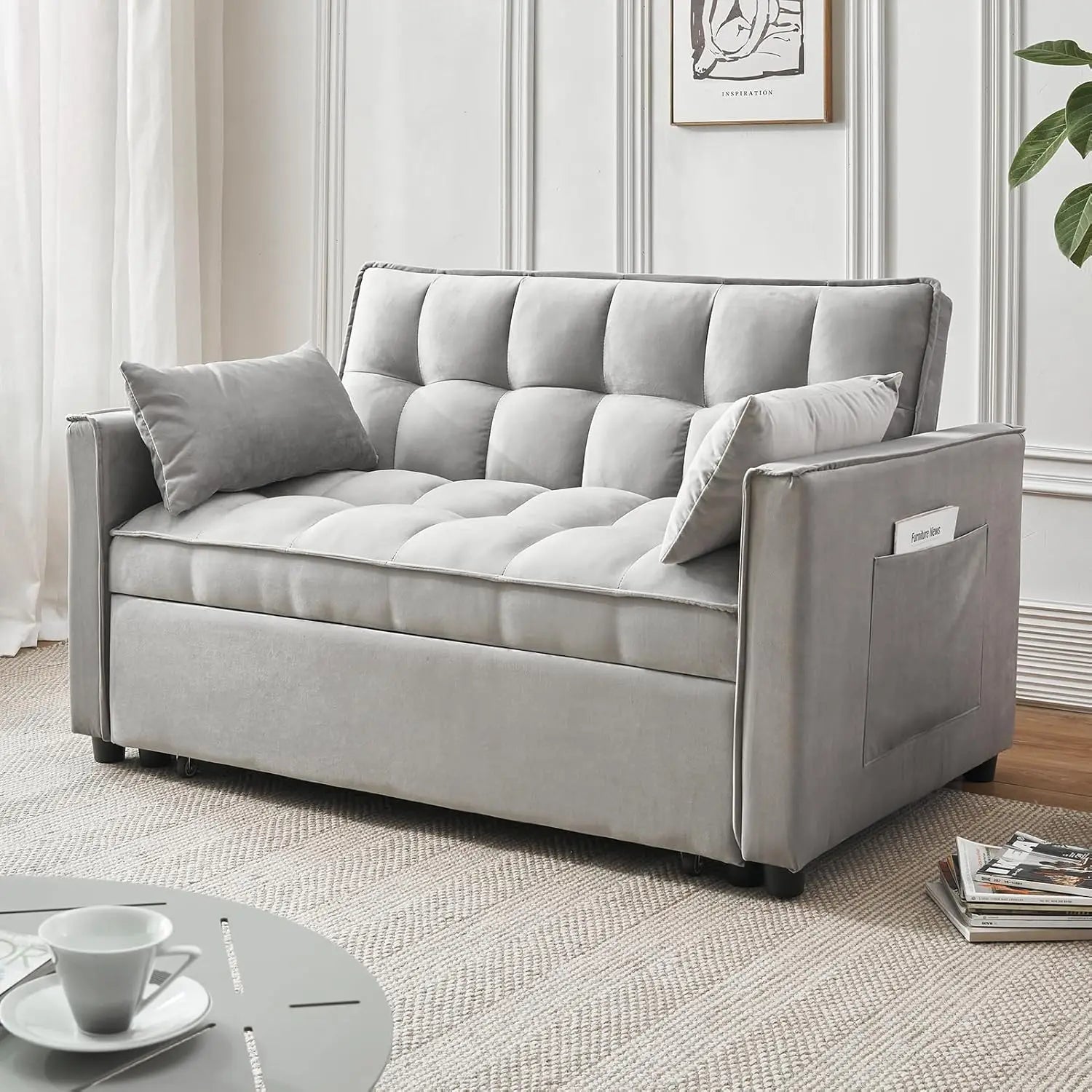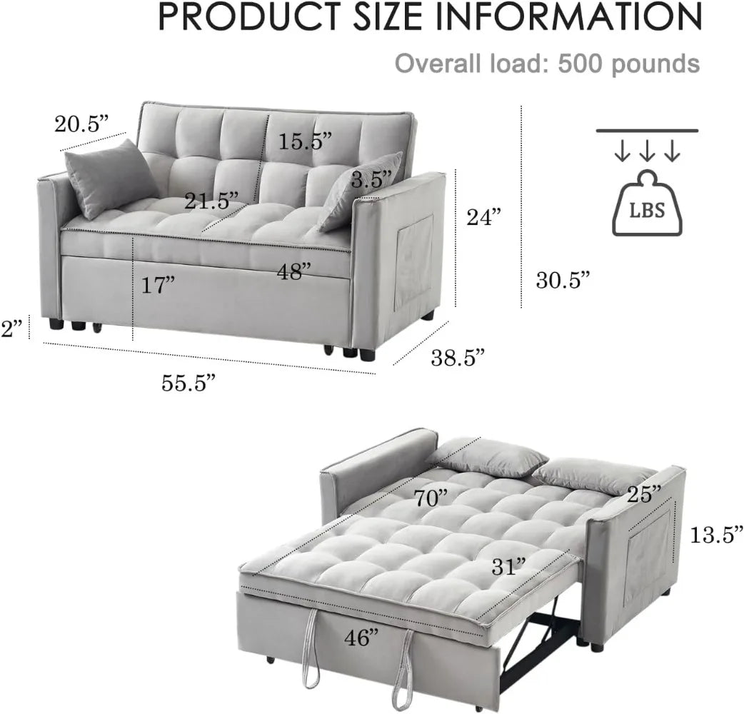 Modern Velvet Futon Sofa Bed 3 in 1 Convertible with Adjustable Backrest